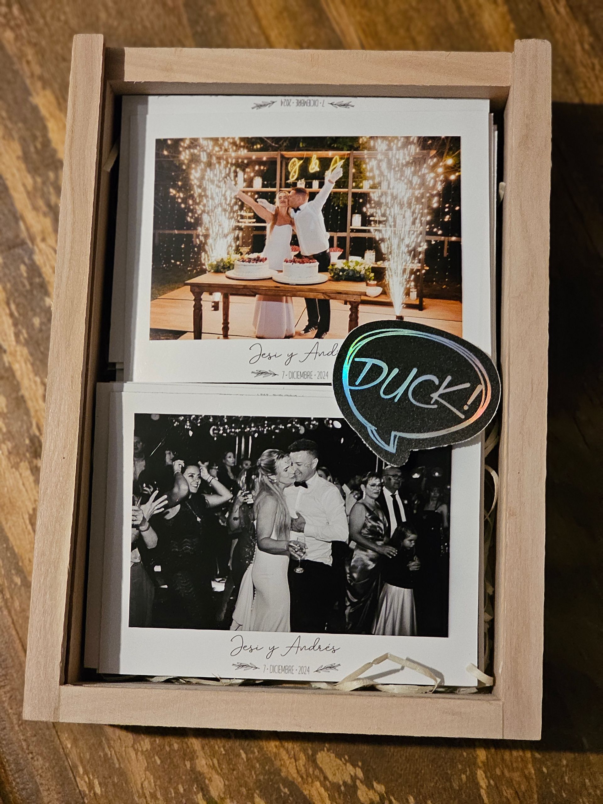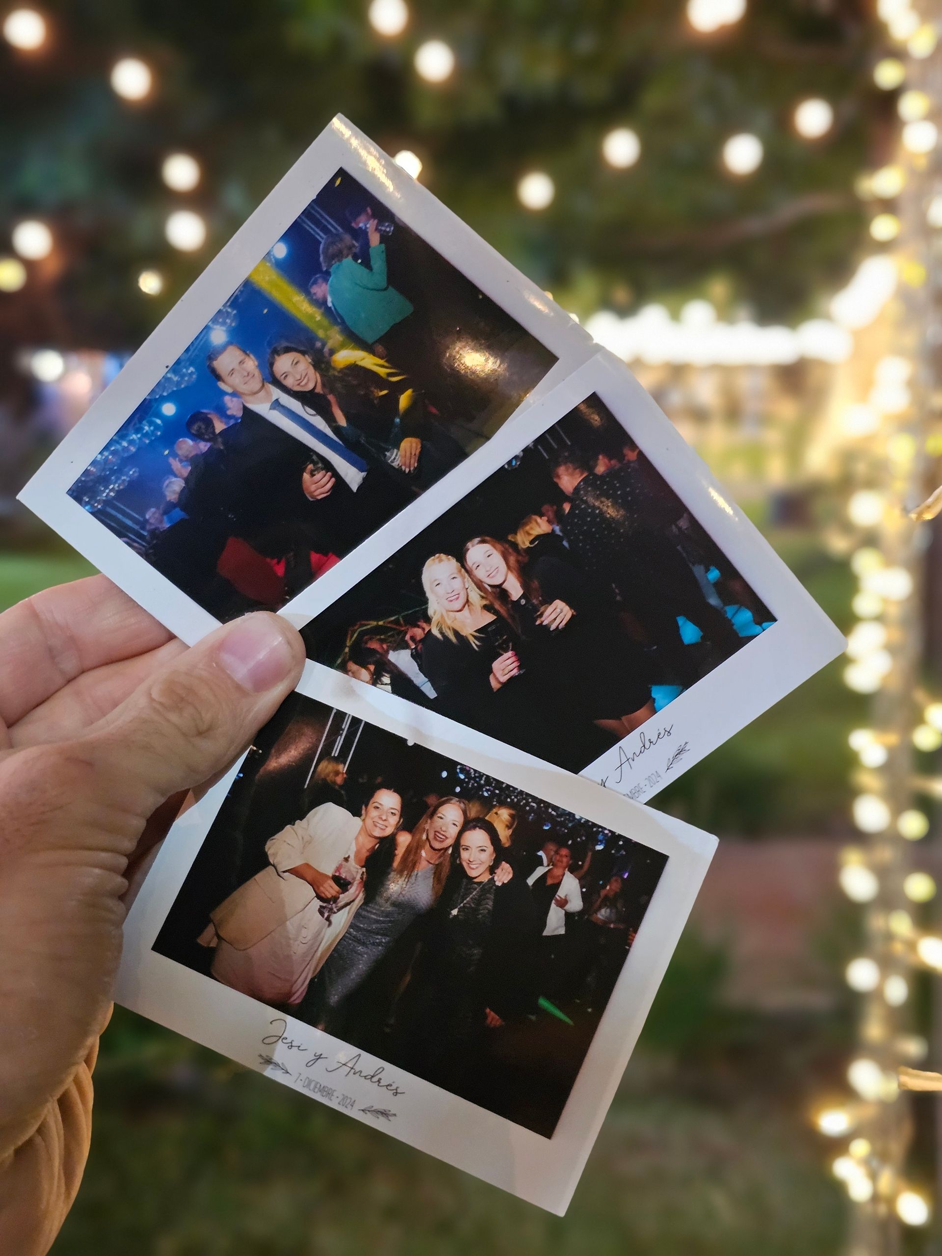 Se imprimen en el momento para que vos y tus invitados puedan llevarse como souvenir